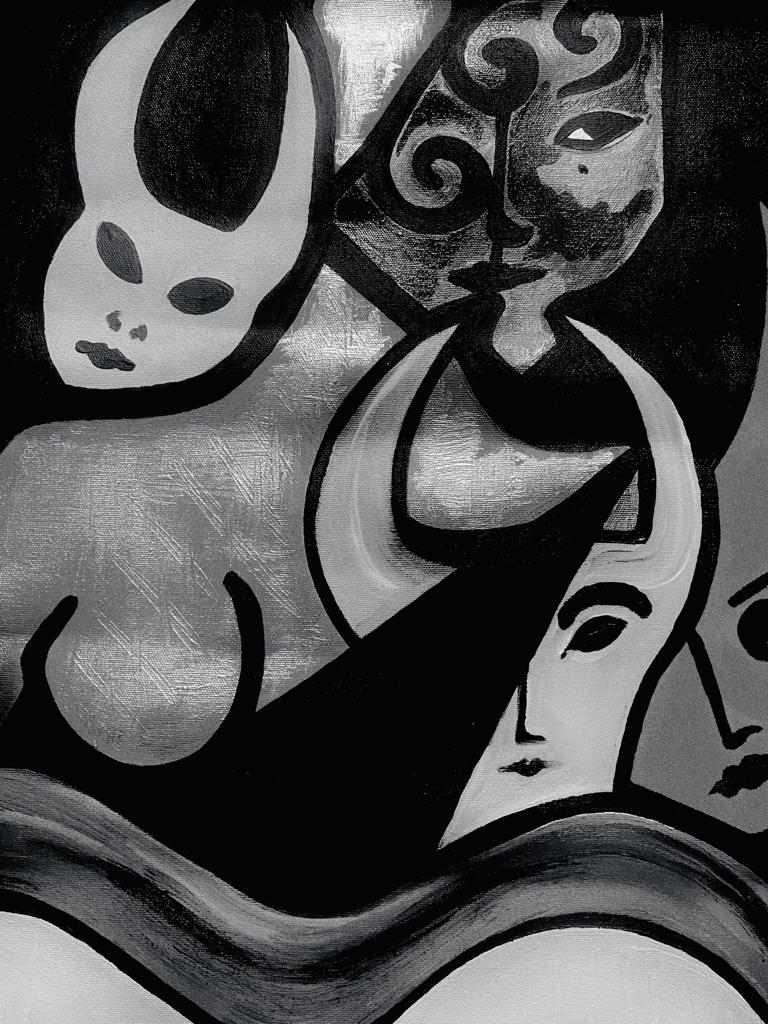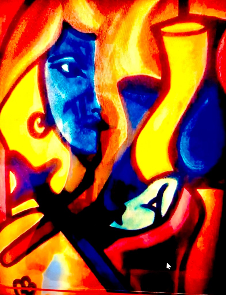 The painting above, oil on canvas, demonstrates how colours complement the composition and as well transmit their own message which may even be different than the message of the composition as a whole…
