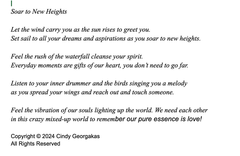 It is my pleasure to feature such a wonderful person as Cindy and her phenomenal poetry. Thank you 🙏🏻 so very much!