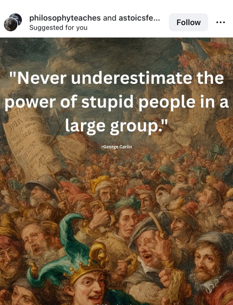 Have you watched » why stupid people are more dangerous than than criminals » on youtube? It is bang on