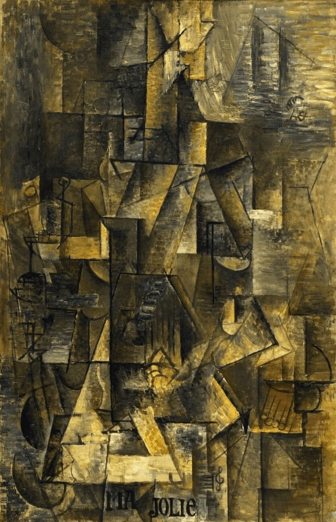 Yet, Picasso was moving on. By 1911, after having become a successful artist, Picasso began to consider her a reminder of harder times and lost interest in her. He left her and in 1912 found a new woman, a new muse, lover, obsession, whom he called ma jolie and whose name was Eva Guel. Eva was born in 1885, and probably, like Fernande, also in Paris. Eva was quite the opposite of Fernande. She was a petite woman of fine chiselled features and of mild temperament. However, the relationship was not to last as ma jolie succumbed to either cancer or tuberculosis and died in 1915. She was his inspiration, one could suppose, for the cubist period where in some of his work he wrote “ma jolie”.