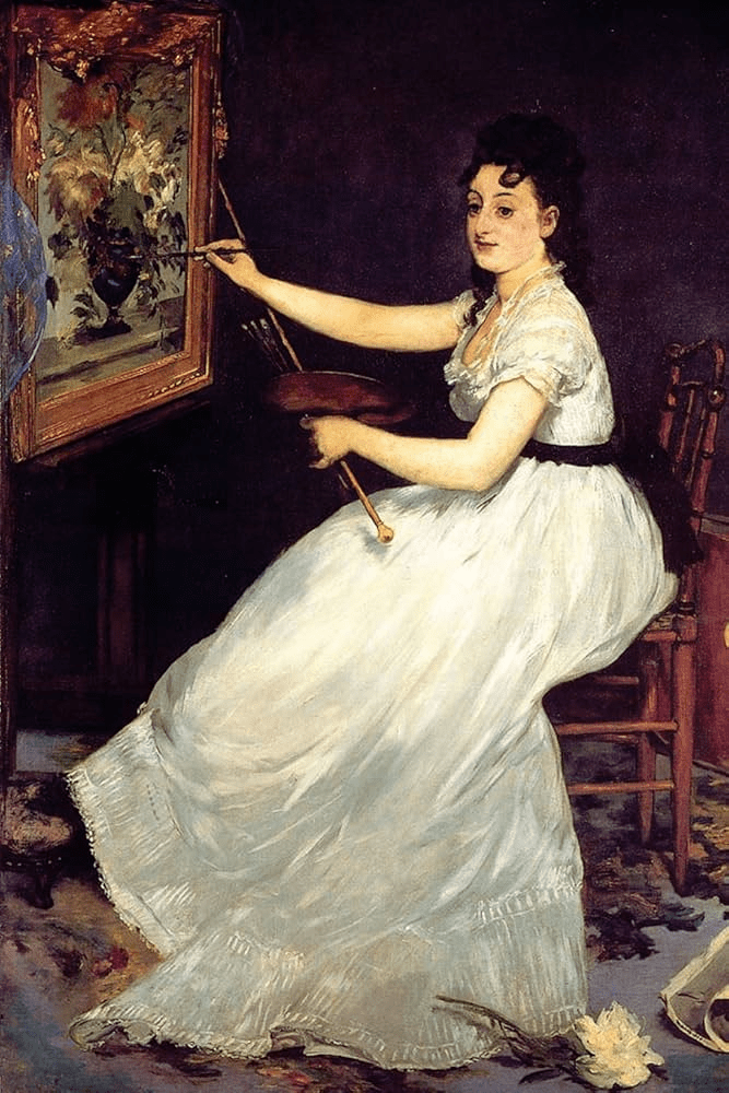 Eva Gonzalès was a French Impressionist painter (1849-1883)… And although she was known in art history as a model, especially for Manet, she is becoming recognized as an artist in her own right. After all, she was an Impressionist and a disciple of Manet himself… Her father, of Spanish origin, was a novelist, and her mother was a well-recognized musician, so we can see that Eva was surrounded by art from a young age, which must have influenced her life significantly. The young artist began studying painting at the age of 16 under the master Charles Joshua Chaplin, who believed that for a female artist to succeed, she needed to be married… But in 1869, Eva met Édouard Manet and asked to be his student… Yet they still insist that the only important thing Gonzalès did was to be Manet’s muse and to be famous for being the model of the portrait he painted of her in 1870… In 1870, she exhibited in Paris for the first time, still loyal to Manet and not exhibiting with the Impressionists… However, in 1871, now influenced by Edgar Degas, she began a new pictorial phase with softer tones and lines in the style of Degas… In 1879, she got married and had a daughter, Julie. Unfortunately, she passed away due to a postpartum embolism on May 5, 1883. Eva was only 34 years old and was buried in Montmartre Cemetery in Paris.
