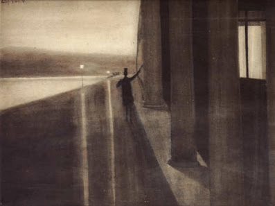 Comenzare diciéndoos que de este pintor simbolista belga nadie me habia hablado en la facultad y no tengo ni idea, porque si me lo hubieran mencionado me hubiera fascinado con su obra que es estupenda… Spilliaert, que nació en la Flandes occidental en 1882 era, además de pintor, ilustrador y grabador… Os diré que Léon se codeaba con tales escritores simbolistas como Maurice Maeterlinck y Émile Verhaeren y sus influencias pictoricas procedian de expresionistas como Edvard Munch y Fernand Khnopff, y también de escritores existencialistas y simbolistas como Nietzsche y Lautréamont. Su tema es la soledad que lo rodeaba, o que nos rodea a todos de cuando en cuando, muy parecido a su contemporáneo, el pintor norteamericano Edward Hopper… Y bueno, aunque algunos historiadores lo clasifican de autodidacta, y eso no existe pues como te vas a ensenar a ti mismo cosas que desconoces, Spilliaert estudio en Brujas en la Academia de Arte… Trabajó de impresor y editor de libros en París y en 1907 comenzó a exponer en Bélgica… Trabaja temas metafísicos y también relacionados a la cultura flamenca, prefiriendo siempre la espontaneidad… Era de carácter introvertido y hasta melancólico y mucha de su obra la realiza a través de la introspección de la cual se derivan sus grandes autorretratos… Muere en 1946…