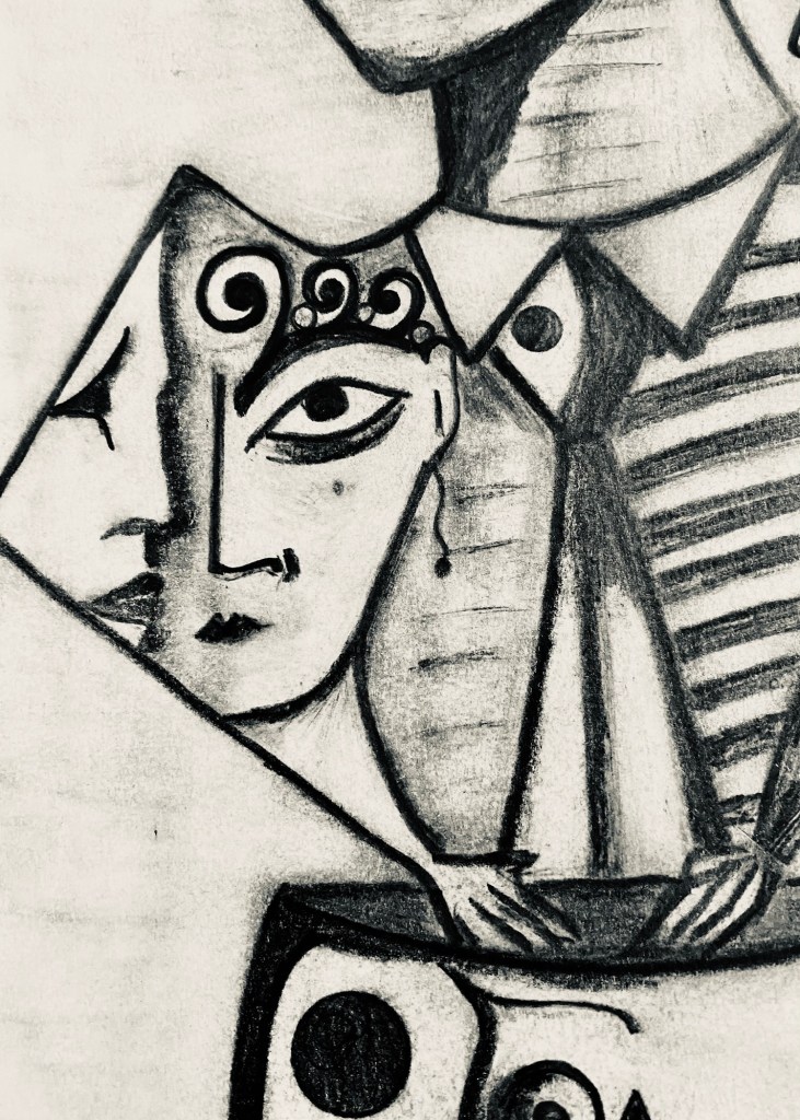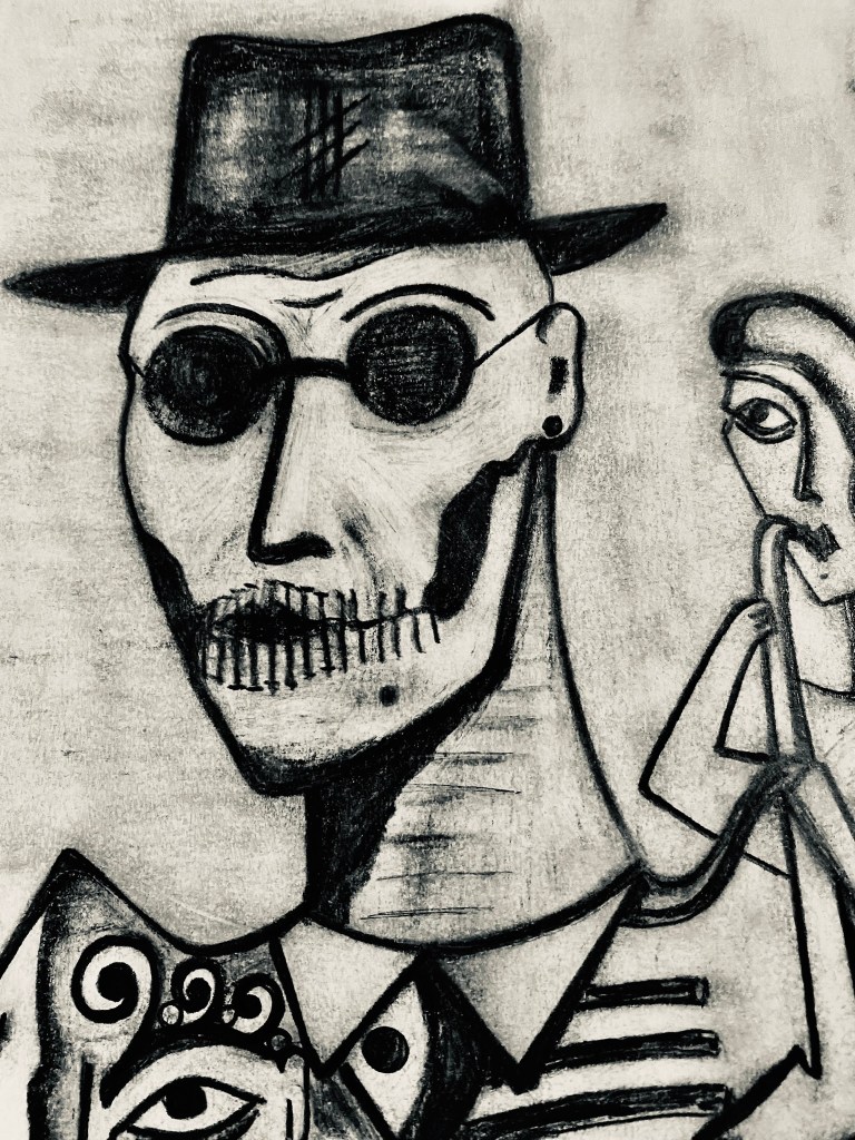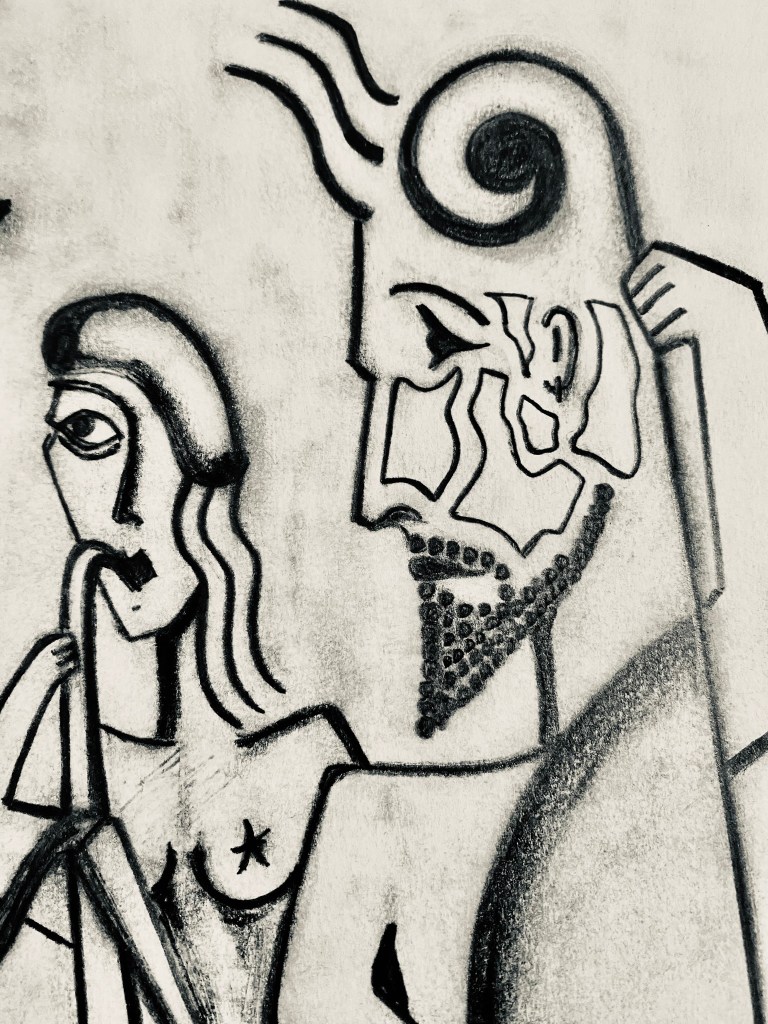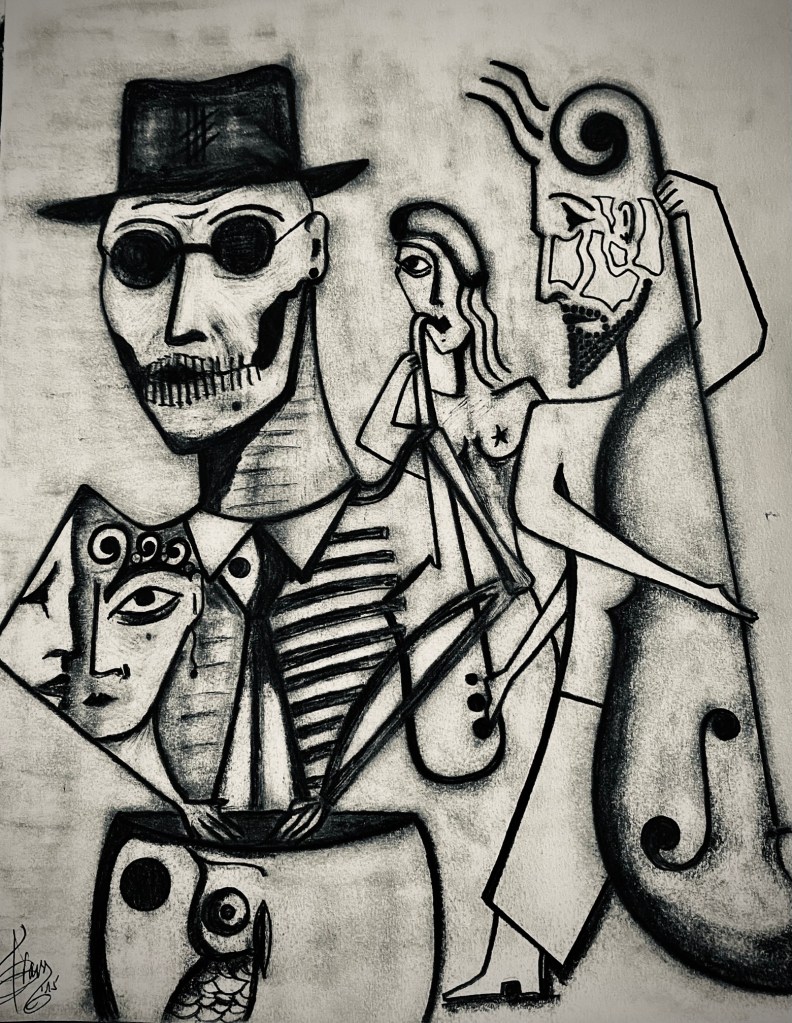 Let’s see, says the painter, what should I paint or draw today? Should one wait for inspiration to arrive? I say no way!… Inspiration, as Picasso said, should catch me working hard, for that’s what being a painter is all about… But well, there are some who think they have to wait for the muses to move them, but your arse has to move on its own and not with the assistance of supposed muses. The artist should be dedicated to his craft and must produce if he wants to live off art and not fairy tales… I have never believed in those paranormal, supernatural, or nonsense things. On the contrary, I have always believed that the artist, like the engineer or the doctor, must get up every morning and get to work. Art is neither magic nor anything out of this world; on the contrary, it is a very human thing, like the breath that sustains us or food. For an artist, work is nourishment, meditation, prayer, and the way to explore the other worlds where the mind and spirit travel to constantly… And since I love to draw I will now show you one of my old drawings from my time in Miami. It is called «Hectoricus» and it is proto-JaZzArt surreal-expressionism.