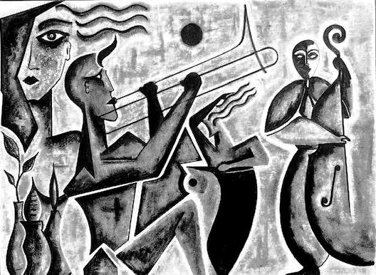 («Jazz en la Calle de Borbón»/Ink on paper by Francisco Bravo Cabrera/All Rights Reserved)