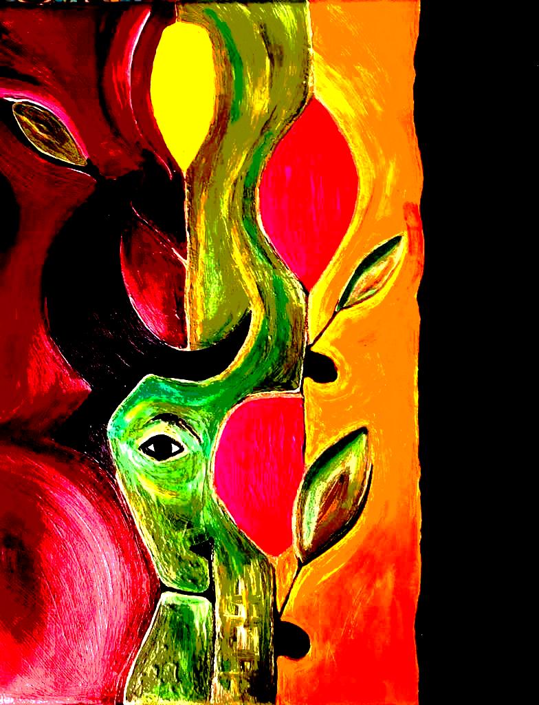 Behind your face, my face appears then yours comes behind the clarity of mine Valencia, we were ninots in a falla burning in the night Images of papier mâché Silver bodies dancing through the smoke and smell of sandalwood On our palms the blood of mandarins we stretch our arms between blue heavens and a small, bewildered olive tree.