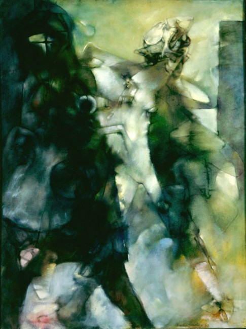He elegido los cuadros de la ultima etapa pictórica de la gran artista norteamericana Dorothea Tanning para ejemplificar lo que es y hasta donde llega la figuración en el arte plástico. Como ya os he dicho, solo hay dos tipos de arte, el arte figurativo y el arte abstracto y no confundáis esto con los estilos y los movimientos artísticos, pues no son la misma cosa. Acordaos que todo lo que no sea figuración es abstracción en el arte visual. La abstracción no puede contener ningún rasgo de figuración, ni elemento alguno que se asemeje, aunque sea remotamente, a las cosas de la vida, o sea a la naturaleza. La figuración viene de muchas maneras. En estos cuadros que os he elegido como ejemplares, veréis las figuras distorsionadas, y los colores que surgen casi de la nada, pero por muy abstractos que parezcan, los cuadros siguen siendo, por ley y por convenio, arte figurativo.