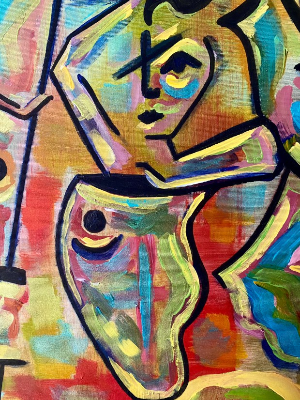 But can jazz, in other words the music created by improvisation, the player as composer and swing (rhythm), be applied to other arts. Surely it can be applied to dance and choreography, but what about painting? I say yes! Absolutely! A painting has to define itself, no matter how well planned and sketched it has been by the artist. The canvas, the composition, has to create itself, and there must be room of improvisation and of course, the composition must swing, it must have dynamics and that is akin to rhythm…