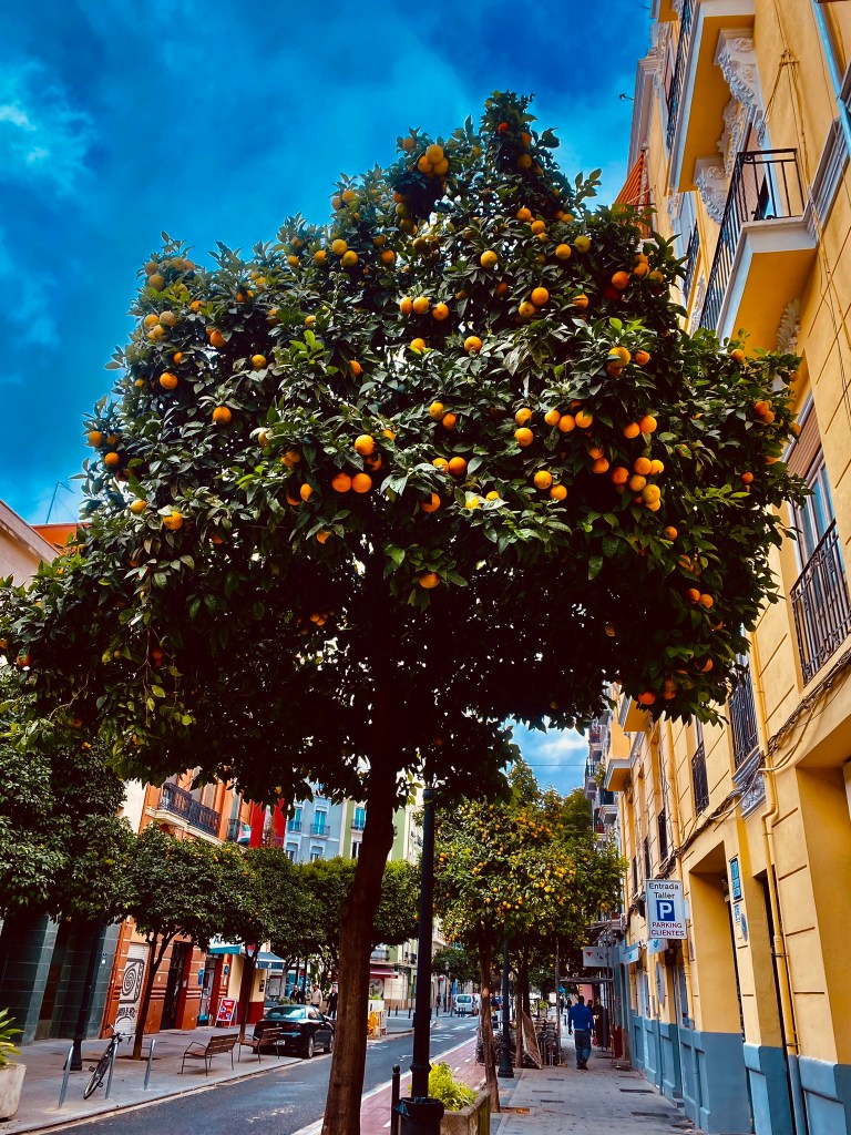 Russafa es uno de mis barrios preferidos de la ciudad. Por sus calles encuentras bares, restaurantes, tiendas y muchas, muchas naranjas, y las naranjas ahora ya se están poniendo anaranjadas me encanta verlas… Pero, aunque la capital se salvo de la DANA del 29 de octubre, no fue así en el resto de nuestra provincia que sufrió los estragos de esa horrible tormenta que ha dejado miles y miles de damnificados y un numero muy, pero que muy alto de muertos. Las aguas se lo llevaron todo y va tomar tiempo, mucho tiempo, para que las cosas en muchos de nuestros pueblos regresen a la normalidad. Fue un horror que causó pánico y desespero, pero después que la lluvia dejo de caer, después que el lodo al fin se detuvo, cuando salió un tenue rayo de sol y amaneció el dia, vimos a cientos de miles de voluntarios, guiados por el corazón y el deseo de ayudar a sus hermanos, que partieron hacia los pueblos, acto de solidaridad, para echar una mano. Ya han pasado tres semanas y aún están allí, al pie del cañón, esos voluntarios…muchos de ellos gente joven, el orgullo de nuestra Comunitat…pues el trabajo no se ha acabado y si el pueblo no ayuda al pueblo ¿Quién lo va a ayudar?