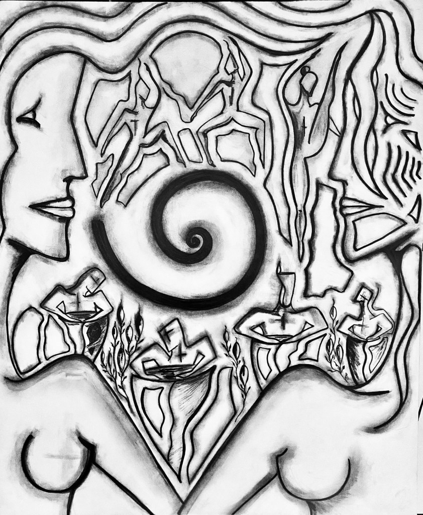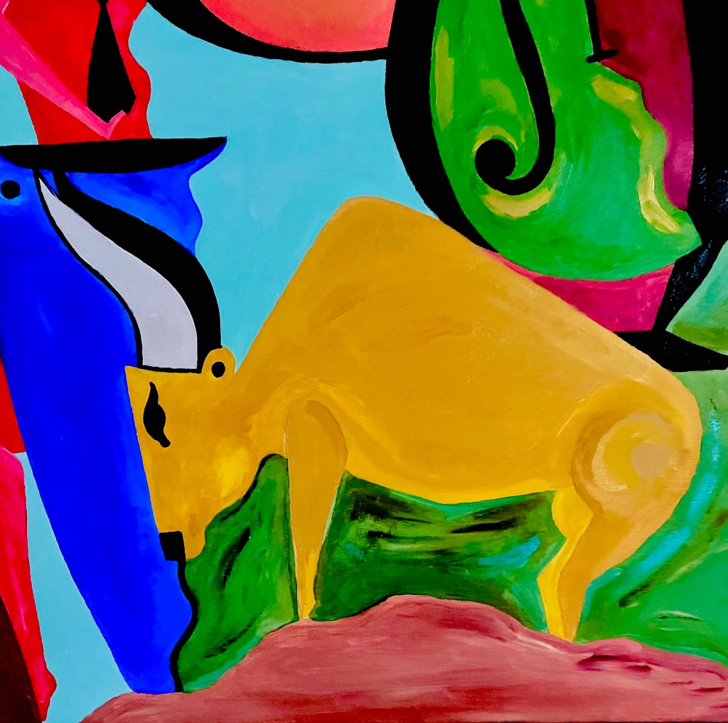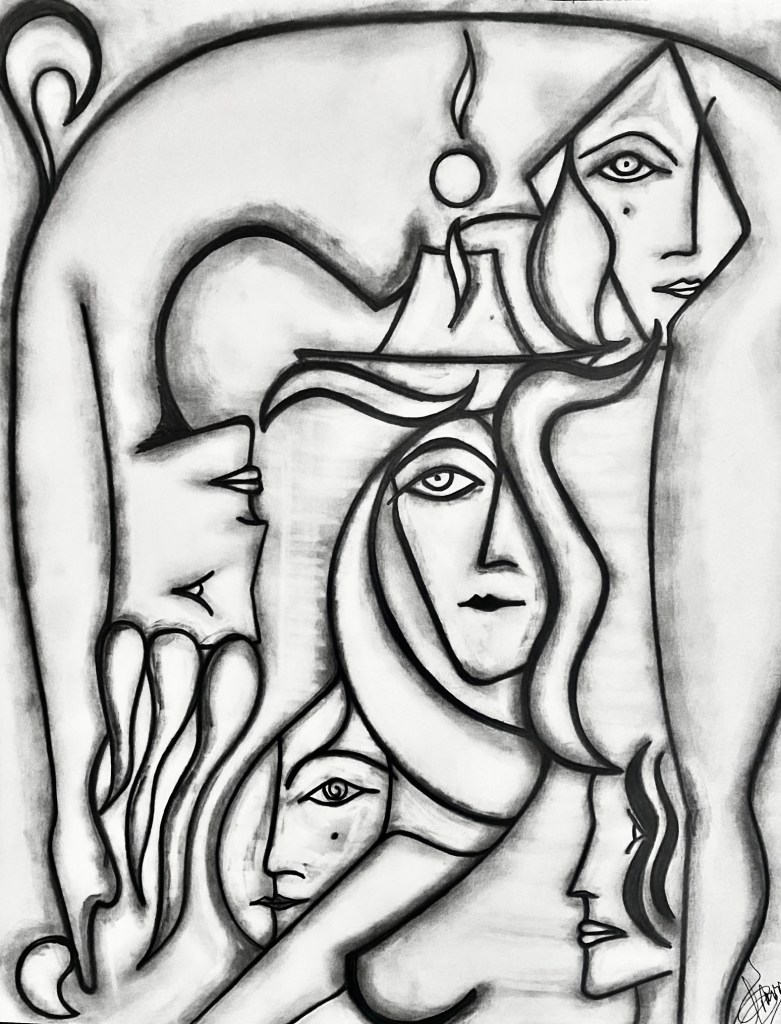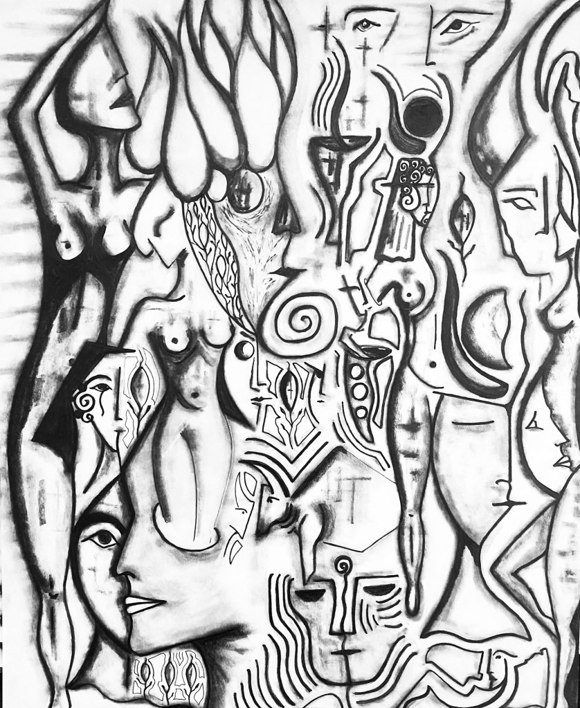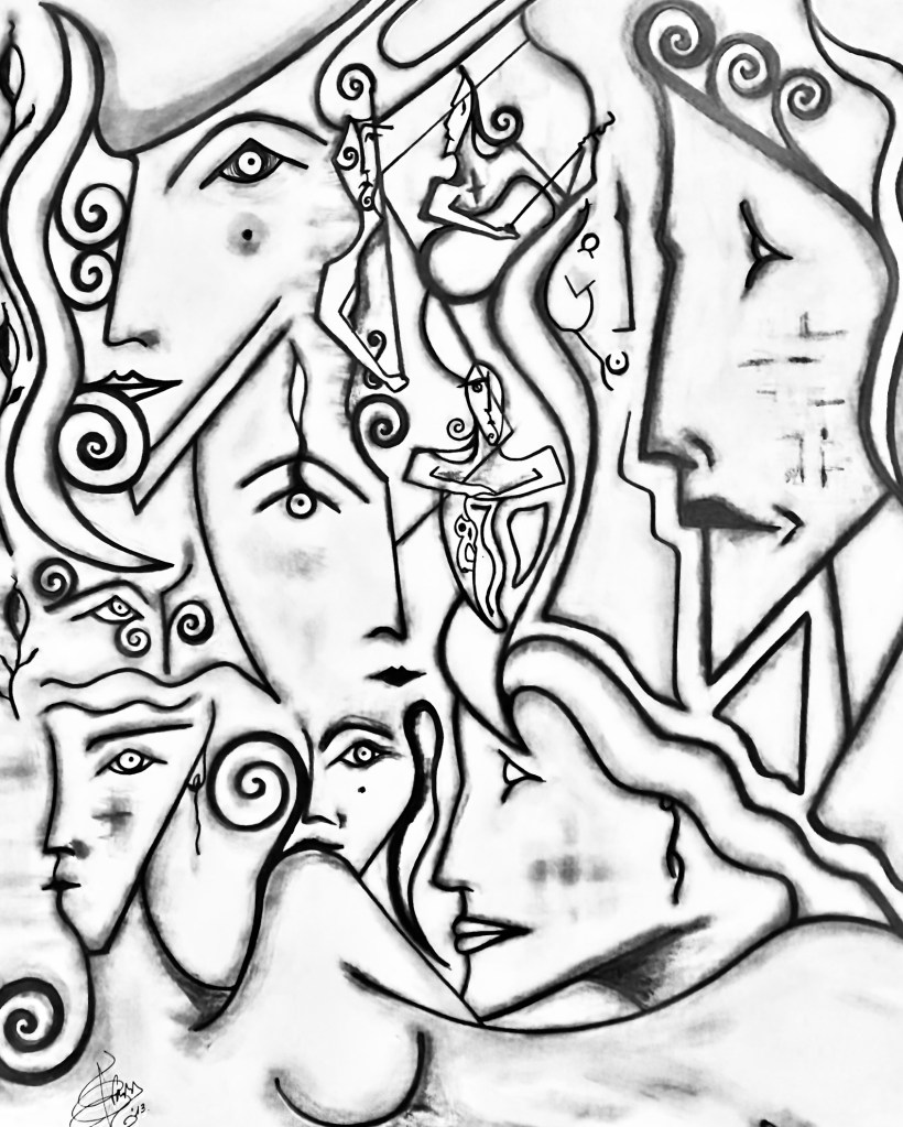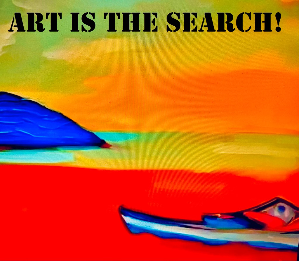Art is the search; I’ve always known this. Listen, one, as an artist, doesn’t paint, sculpt, sing, or dance without a clear and defined purpose. Our job is to communicate. To do this well, one must acquire knowledge, and for that one has to study, and study leads to research, i.e. the «search». Believe me, this is gospel. A painting is a poem, a treatise on philosophy, and simultaneously a billboard that conveys a message, sometimes clear, sometimes a bit obscure, but a message nonetheless. So, I tell you that art becomes our language, the figures (if you work with figuration) are words, and the composition is the text, (it’s the same thing with abstract art). Finally, remember well that the artist must search within themselves for a way to express what they desire, or what is necessary for others to understand, or at least to like what they have created.
