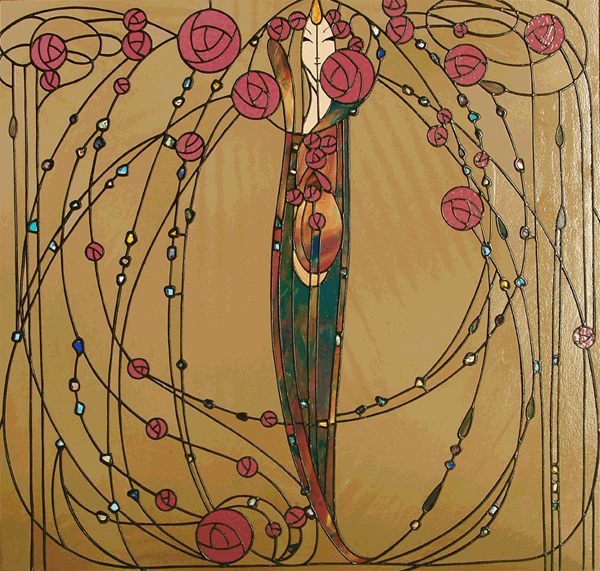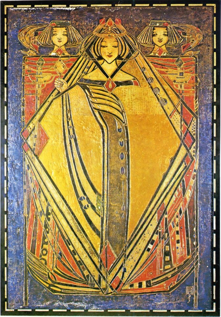 I must confess I knew nothing about Margaret McDonald. No one ever spoke of her in Art History class… But I am glad to have discovered her and happy to bring her to your attention as well. She belonged to the School of Glasgow and was a modernist and a symbolist painter. Although the group was a small one, composed of her husband, her sister and another artist, they were greatly influential and became the epicentre of Modern Style, what is called Art Nouveau in France. She was born in Tipton, UK in 1864 or 1865 and she died in 1933 in London. She studied art at the Glasgow School of Arts after her family moved there.