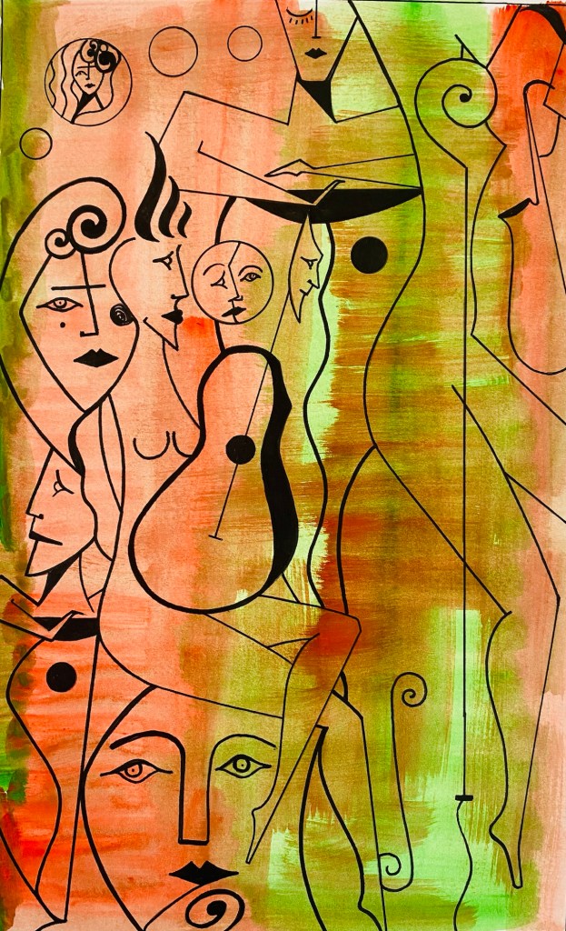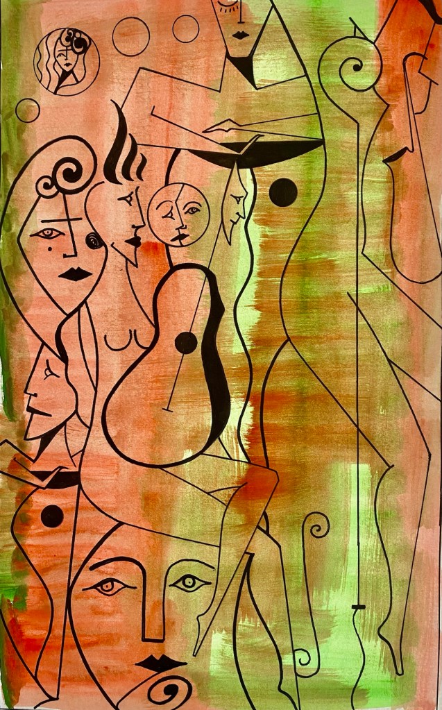 The Euro-Ku, a style I developed in 2022, is the way a Western poet/writer can best approach a style of poetry native to Japan, the Haiku. As someone who does not have the history or the culture of an authentic Japanese poet, it is impossible to do justice to that honorable and long tradition. Therefore, wishing to honour the style but to give it the spirit that a work of art has when it is made in accordance to one’s place and time, I invented this new form, the Euro-Ku. It has three lines (stanzas, verses) but without a syllabic count (as our language does not have the same rhythms as the Japanese language), and each line must follow the previous one logically and sensibly. The lines cannot just go off floating in the air, as that works in Japanese but not in Western languages. And finally the poem must be accompanied by an illustration also of the authorship of the poet. Simple, clear, spiritual and in accordance to Western history and culture.