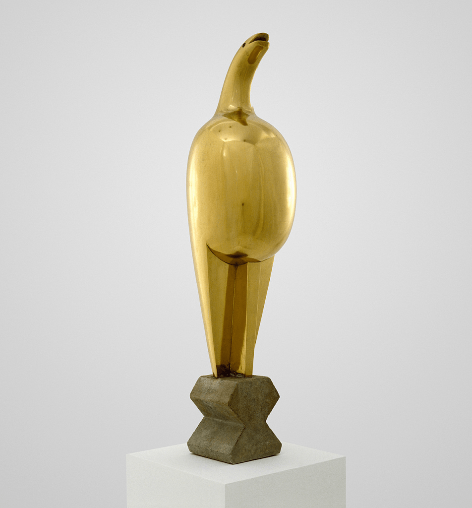 Brâncuși was born in 1876… He worked the fields as a shepherd and then did other manual labour jobs as he taught himself to read. Later he was admitted to the Bucarest School of Fine Arts. In 1904 he went to Paris to continue his art education. His time allowed him to coincide with artists like Rodin and the Impressionists. And from 1909 to 1910 he worked with Amedeo Modigliani… He exhibited in Chicago, New York, and Boston… He returned to Rumania in 1923 already a world recognised artist…