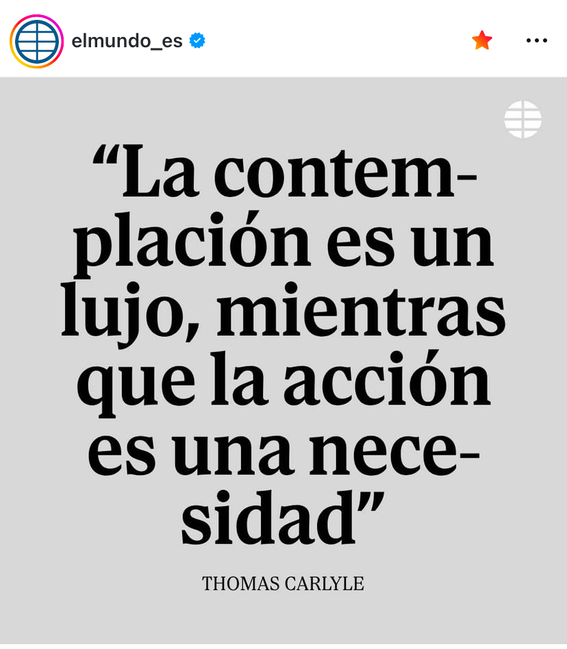 This was posted today on the Instagram of the Spanish newspaper El Mundo. Supposedly, it was said by Thomas Carlyle, a philosopher, historian, translator, mathematician, social critic, and essayist. Quite a busy Scot. This gentleman was also a professor and even became rector of the University of Edinburgh.