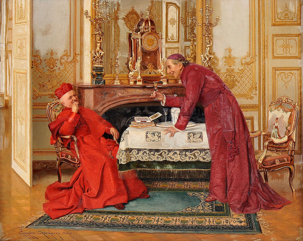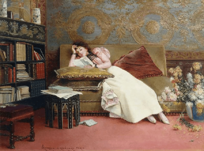Georges Croegaert was born in Antwerp, Belgium in 1848. He was an academic painter who depicted scenes and portraits of elegant, refined people from high society. He studied art at the Royal Academy of Fine Arts (Antwerp) and then, in 1876, moved to Paris where he lived until his death in 1923. His canvases are authentic scenes of the Belle Époque style. However, he is also recognized as one of the main exponents of anticlerical painting. He exhibited at the Paris Salon (1882-1914) and also abroad.