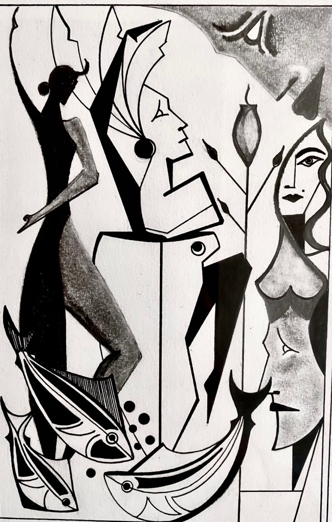 Si hay vida hay movimiento… Un cuadro, sea una pintura o un dibujo también tiene que tener ritmo. Bueno como mis cuadros son arte-jazz (JaZzArT) tienen ritmo e improvisación y tienen que dar la sensación de que los propios integrantes de la composición se están montando su propio rollo. No se, eso no me lo ha enseñado nadie, lo he sacado del aire, pero me cuadra… A ver si lo notas en estos dibujos a lápiz y tinta, esta serie de algunos años atrás.