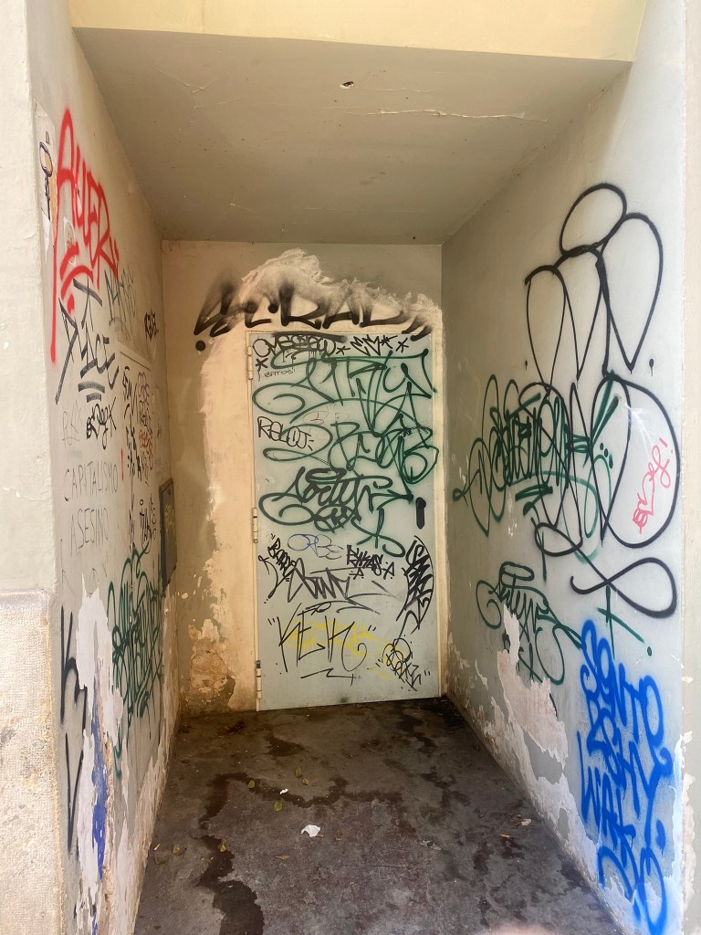 TVamos a comenzar por decir que esto no es arte publico ni arte callejero. Esto es una vergüenza y una fealdad que está por doquier en nuestras ciudades europeas y yo me pregunto ¿Por qué será? Y la respuesta es muy simple, porque a nadie le importa y mucho menos a la policía.