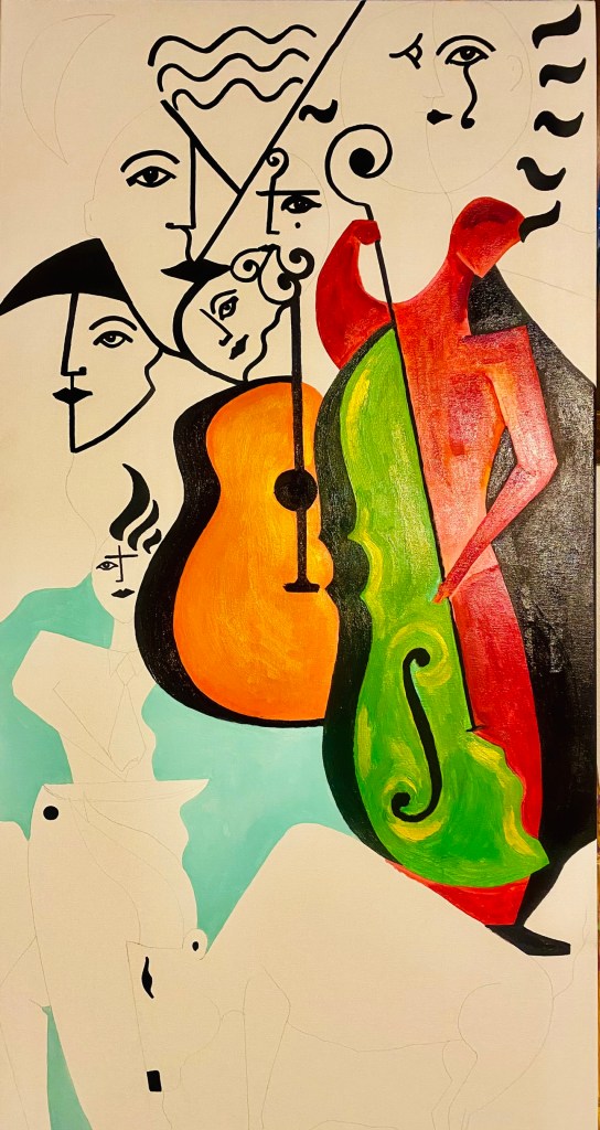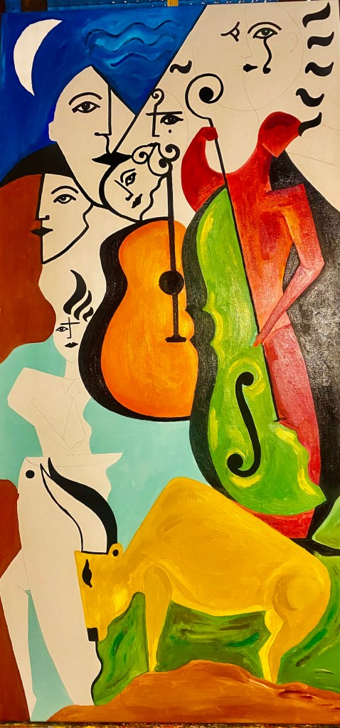 Even though it is not finished, the painting already speaks for itself and conveys its message. Its world may not be ours but it has the same merit and also its same challenges. That’s art… Art, after all, is the search, but the search that must yield fruit…