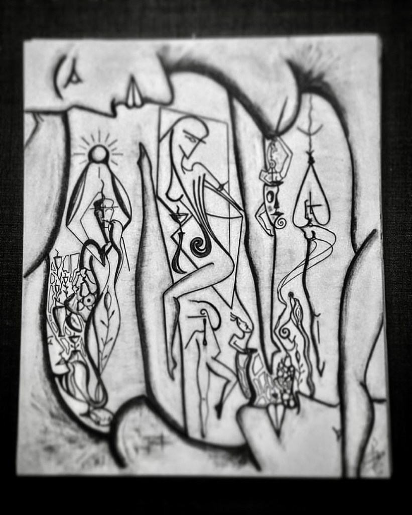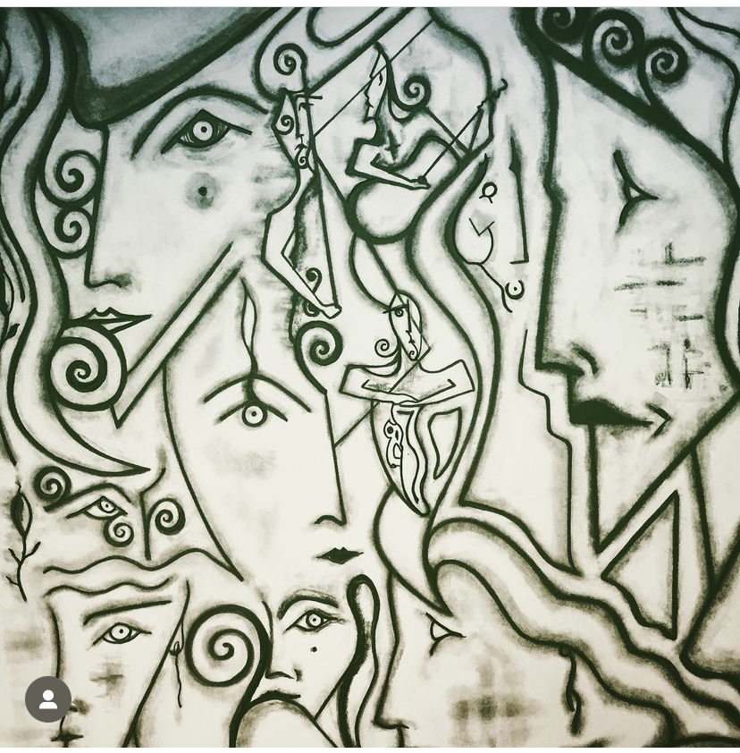 «Pero Pera» («But a Pear»), has become my favourite work, well but always the last one I paint is… This painting measures 70 x 140 centimetres and I have painted it with acrylic colours on canvas. The style (if styles need to be mentioned) is surreal but at the same time expressionist since I don’t paint what I see (or what I have seen) but what I feel. Also what I sense, or what I believe those figures are expressing. As usual, this painting is figurative but if you look closely you will see a lot of abstraction in the negative spaces, let’s say, the spaces between the figures of the composition. This, like all my works, is already for sale. For more information, please contact my representative, «By Guloshka» (Guloshka404@gmail.com or IG: @Guloshka).