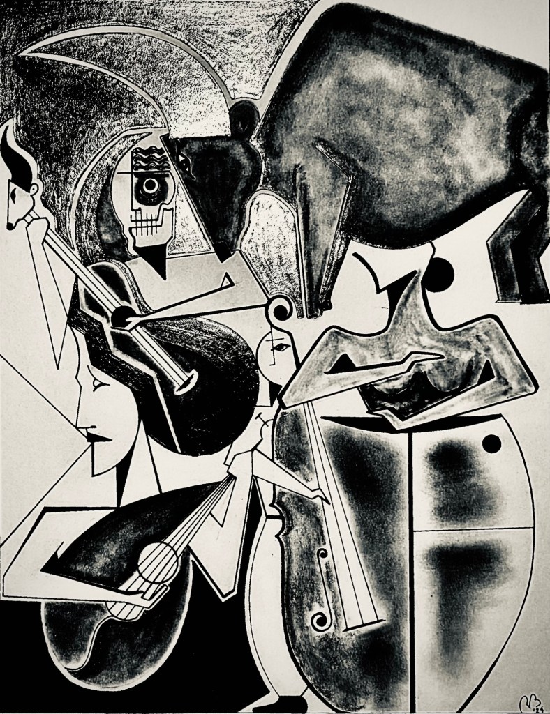 Pues este dibujo, de la serie «JaZzArT» nació en Miami cuando éramos Omnia Caelum Studios Miami en 2018, justo antes de trasladarme a España. Lo había dejado, semi-olvidado y sin terminad, hasta ahora que lo he terminado y ya está a la venta…