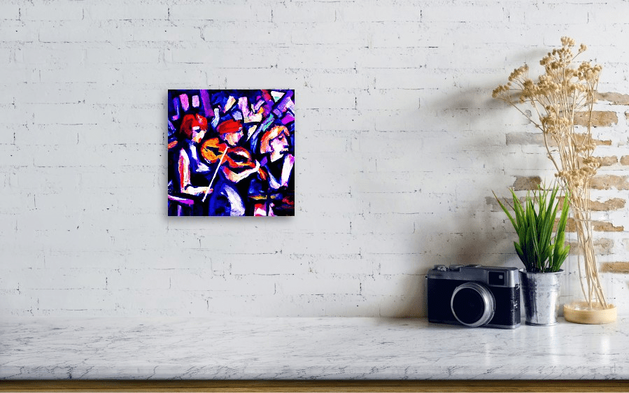 What you see is a fine art print, this one of «Violinistas» is the acrylic print, but there are other types as well as other items with this image. Pixels (a Fine Art America company) is the only company I use to create and sell my fine art prints. Check out my gallery at Pixels and check it often as I often change the images I place there. Fine art prints by Pixels are high quality and Pixels handles the entire transaction and they ship quickly to you. This is a very affordable way to own original art.