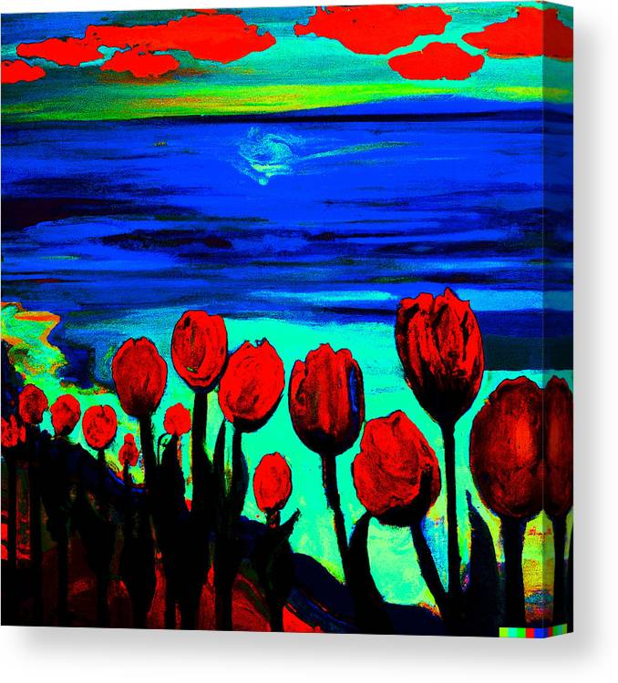 «Thirteen Tulips By The Sea» that you see here is in its canvas print form and it is now available at Pixels (a Fine Art America company) through my gallery. This is the only company that I have trusted with my images to create fine art prints of high quality. Pixels handles the entire transaction and ships quickly. Check out my gallery often as I change the images frequently to keep things exclusive and fresh.