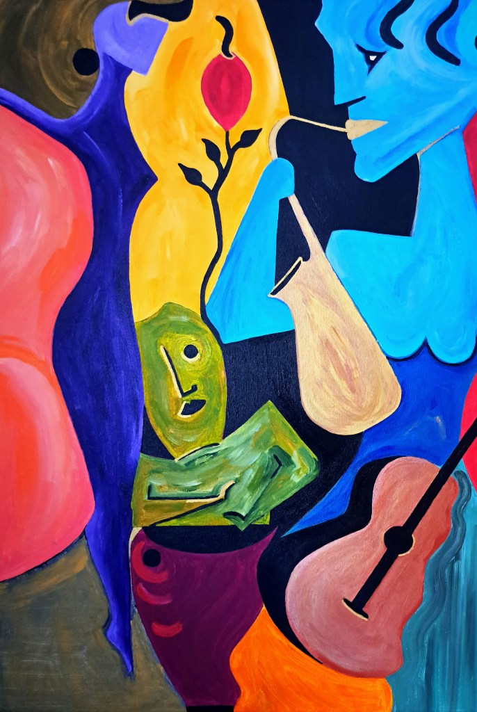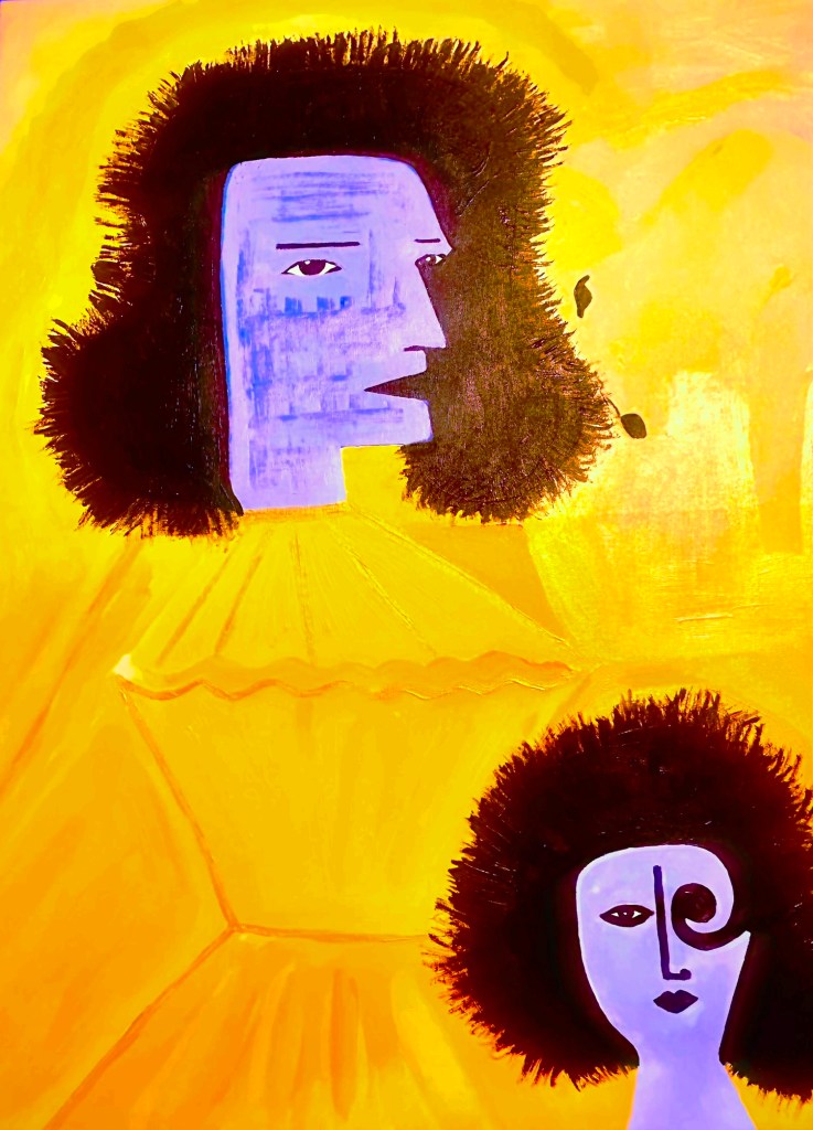 The «Blue Menina» is from 2023 and has no owner, it belongs to me and adorns the walls of a room in my house. Perhaps it moves you and you want it… This version is digital, but there is another one that I have painted with acrylics on canvas, and if you want to see it, here it is, it measures 80 x 90 cm: