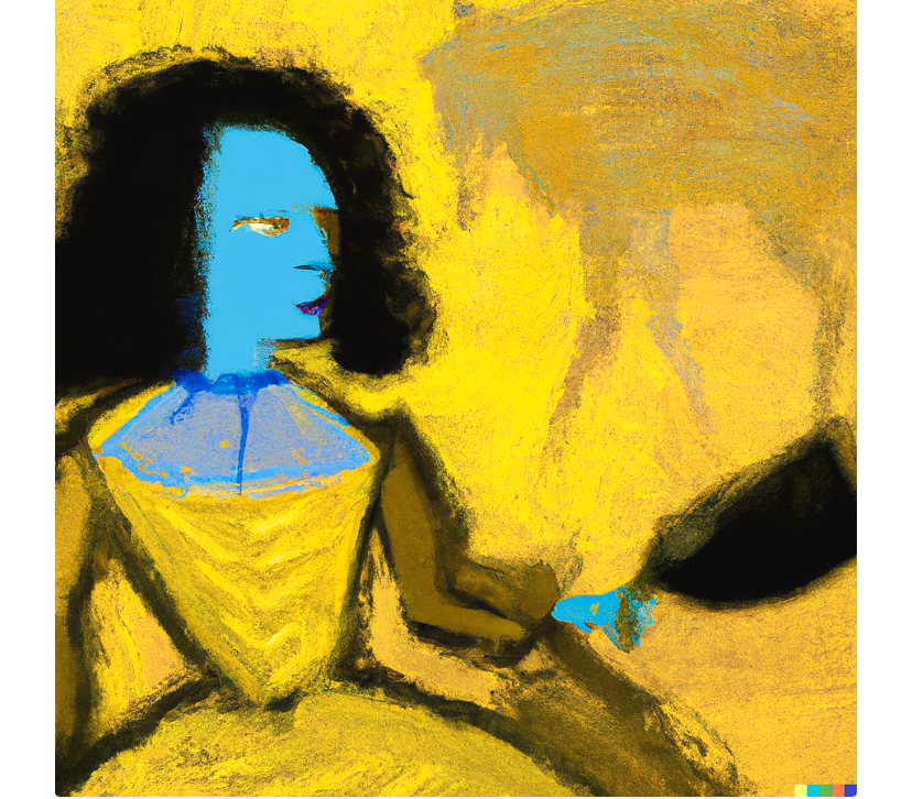 La «Menina azul» es de 2023 y no tiene dueño, es mía y adorna las paredes de una habitación de mi casa. Quizá a ti te mueva y la quieras… Esta version es digital pero hay otra que si he pintado con acrílicos sobre tela y si quieres verla, aquí está, mide 80 x 90 cm: