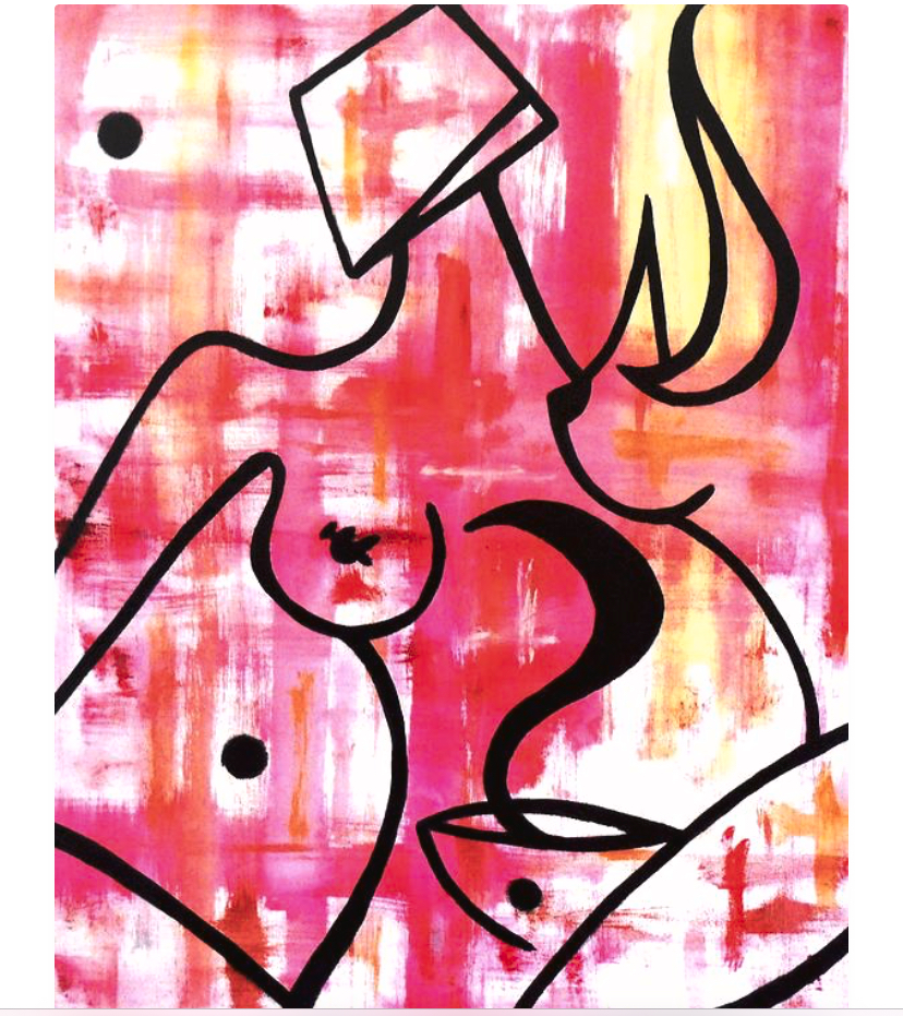 I painted this piece in 2004… I remember starting with the intention of creating an abstract work, but the black line had other ideas and began to form the woman. It is also part of a private collection in the United States.