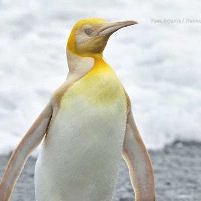 And don’t think it’s an albino or anything like that, it’s a genuine, authentic penguin without any genetic defect and it is not a mutation, but it is golden, the «golden penguin.» That’s why I say that my penguins can too roam the icebergs of Antarctica.