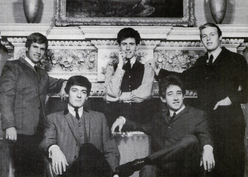 These are…or were…The Hollies in a pic from 1965. They started in Manchester, England in 1962 and had plenty of hits but their success lasted barely to 1966. They were certainly a major group forming part of the «British Invasion» to the US in the early to mid sixties. Graham Nash was one of their most famous members.