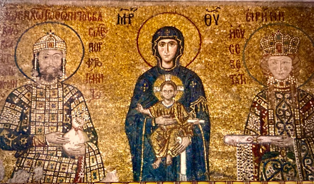 Ἁγία Σοφία, (Aya Sophia), Sancta Sapientia, o Santa Sabiduría… La catedral fue construida, entre el 532 y el 537 A.D., por el emperador romano Justiniano I para que sea la catedral de los cristianos de Constantinopla, la sede de la religion oficial del Imperio Romano.