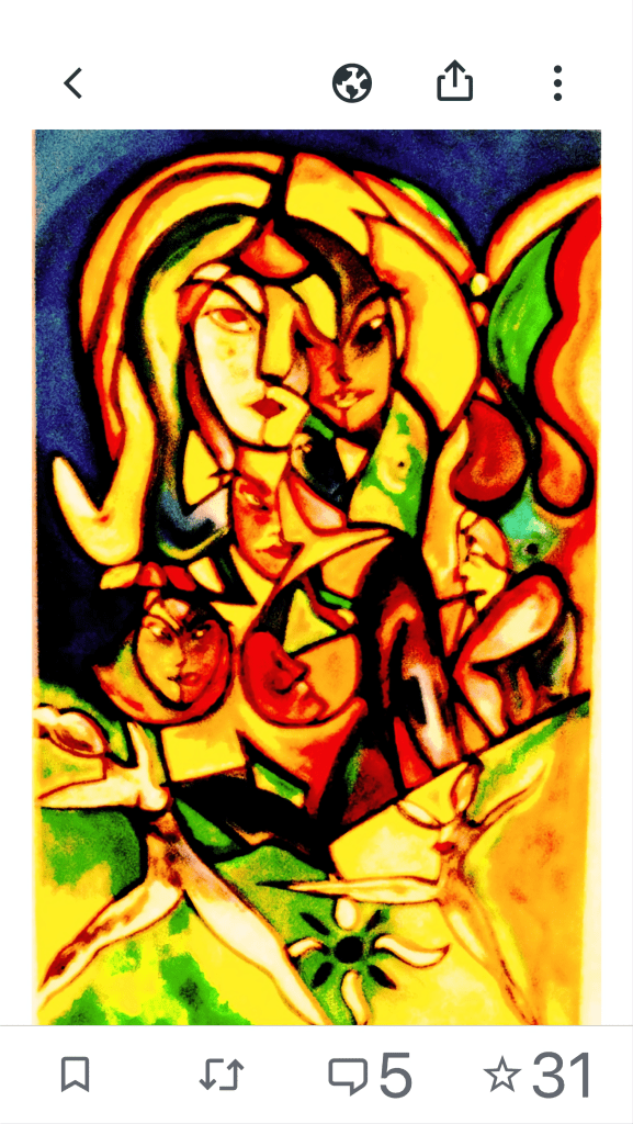 Os pregunto si esta obra es ¿Abstracción o figuración? Esta imagen, que esta compañía la ha convertido en una reproducción ha sido muy popular desde el momento en que la he subido a mi galería virtual.