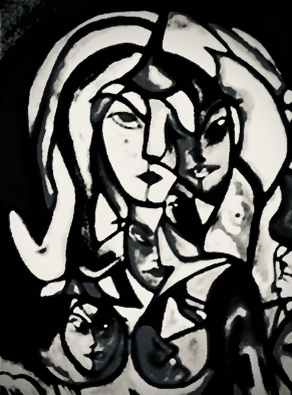 This one is from 2016 and it is certainly in the group of Proto-Jazz-Art. This composition is surreal in thoughts and intentions as I allowed items, as different as flowers, fruits, musical instruments and figures to co-exist in a jazzy world.