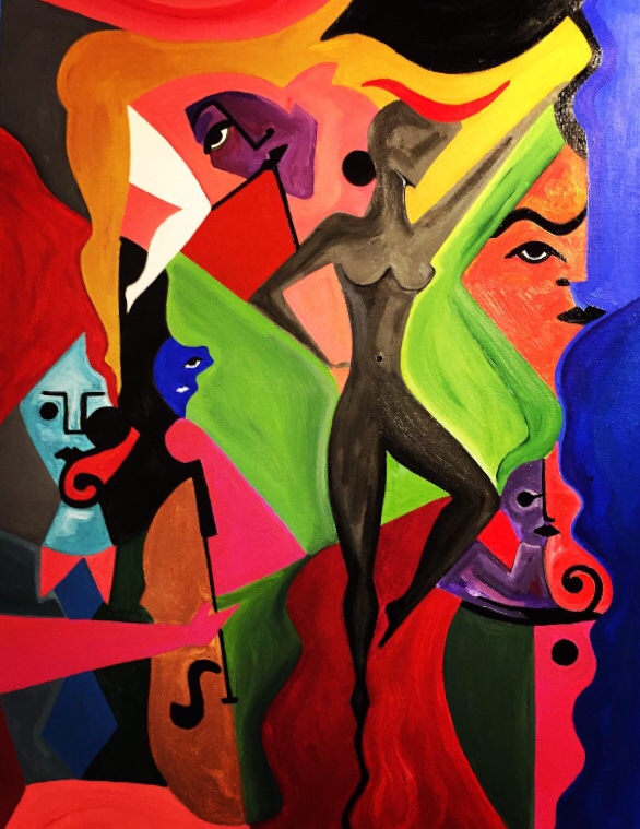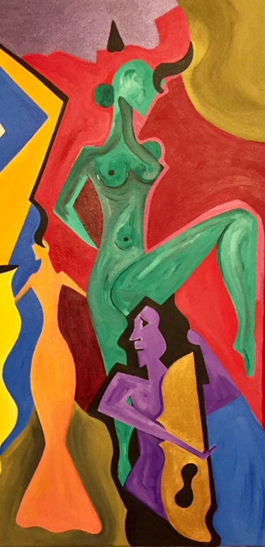 I consider the paintings to be “Contemporary Expressionism” and, as in many of my paintings, the “characters” exist in a pop-abstract (sometimes surreal) background.